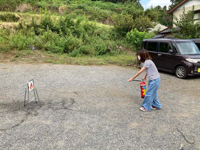 それぞれ訓練用の水消火器を消防本部からお借りして