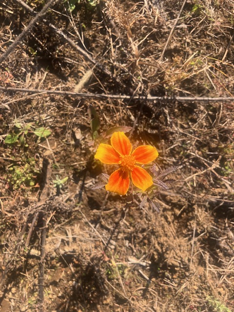 ふと見ると一輪マリーゴールド?咲いてます